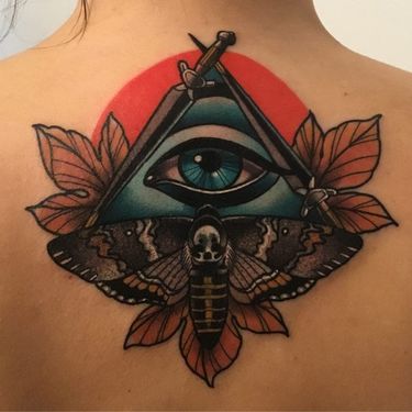 The colors most used in embrace up tattoos are blues, browns and blacks. This is simply considering they are the best at covering quondam ink. Pigments like shades of red, yellow and orange oft fail to fully conceal preexisting ink, especially if information technology the shades beneath are likewise night. Think of tattoo ink similar watercolor: y'all can't cover a dark red with blue, but you tin can brand purple. This is the sort of thing your tattooist volition be thinking of when designing your new piece. Usually, the bolder and darker you go the meliorate the cover upwardly will exist but, that being said, this is the perfect time to figure out whether or non you'd like to lighten your tattoo with laser removal first. In effect, this will lighten the vibrancy of your previous ink and widen the diversity of colors yous can utilize in your cover upward tattoo.